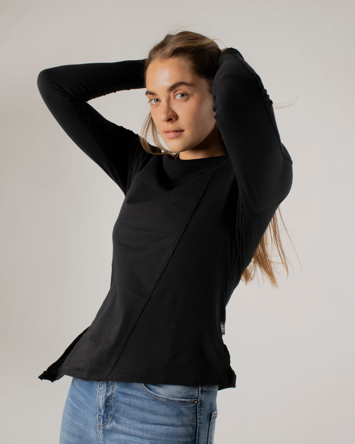Asymmetrical Cotton Jersey Black Top